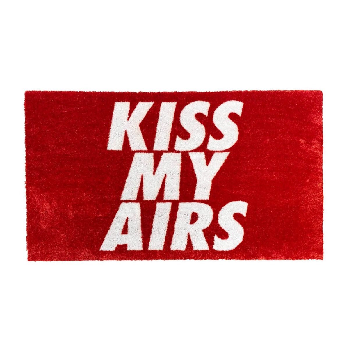 KISS MY AIRS! als het maar duidelijk is. Dit is de vloermat die elke Air Max liefhebber hoort te hebben. De vloermat is in 2 formaten beschikbaar en kan als schoonloopmat maar ook als tapijtje in je sneaker-, game, werk- of slaapkamer gebruikt worden!